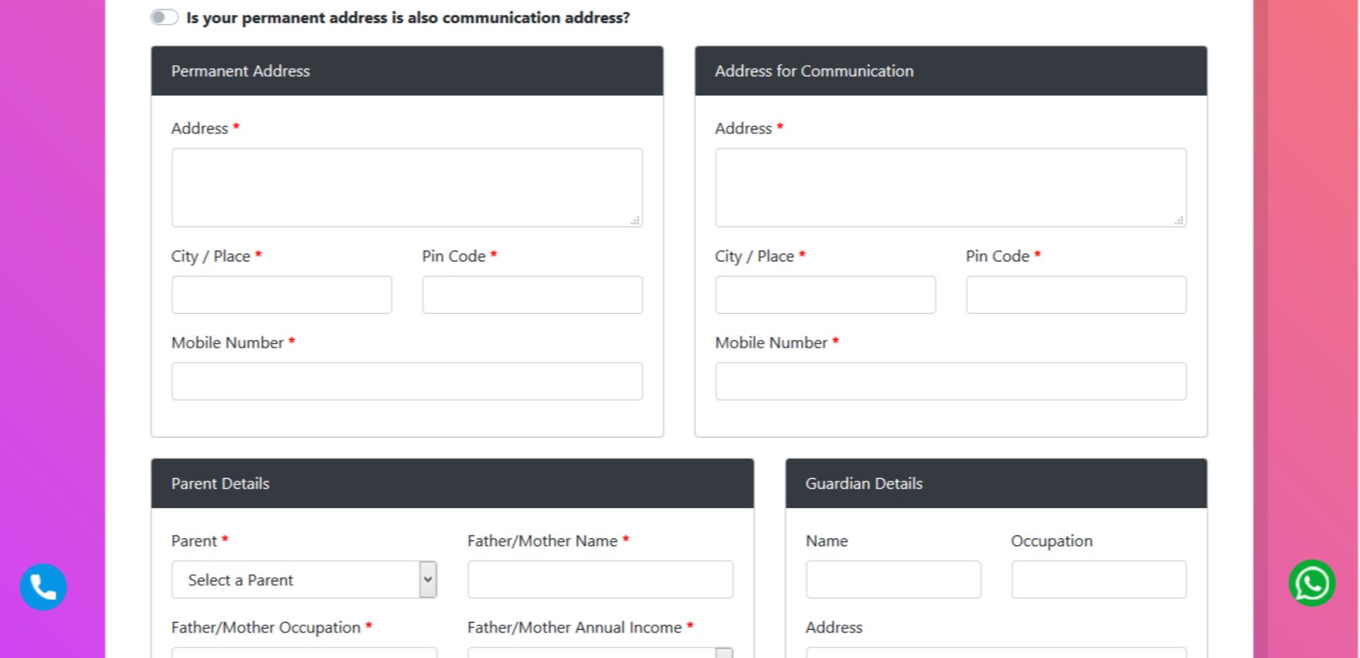 - Students can able to fill an application form that includes all basic personal and contact details, education.